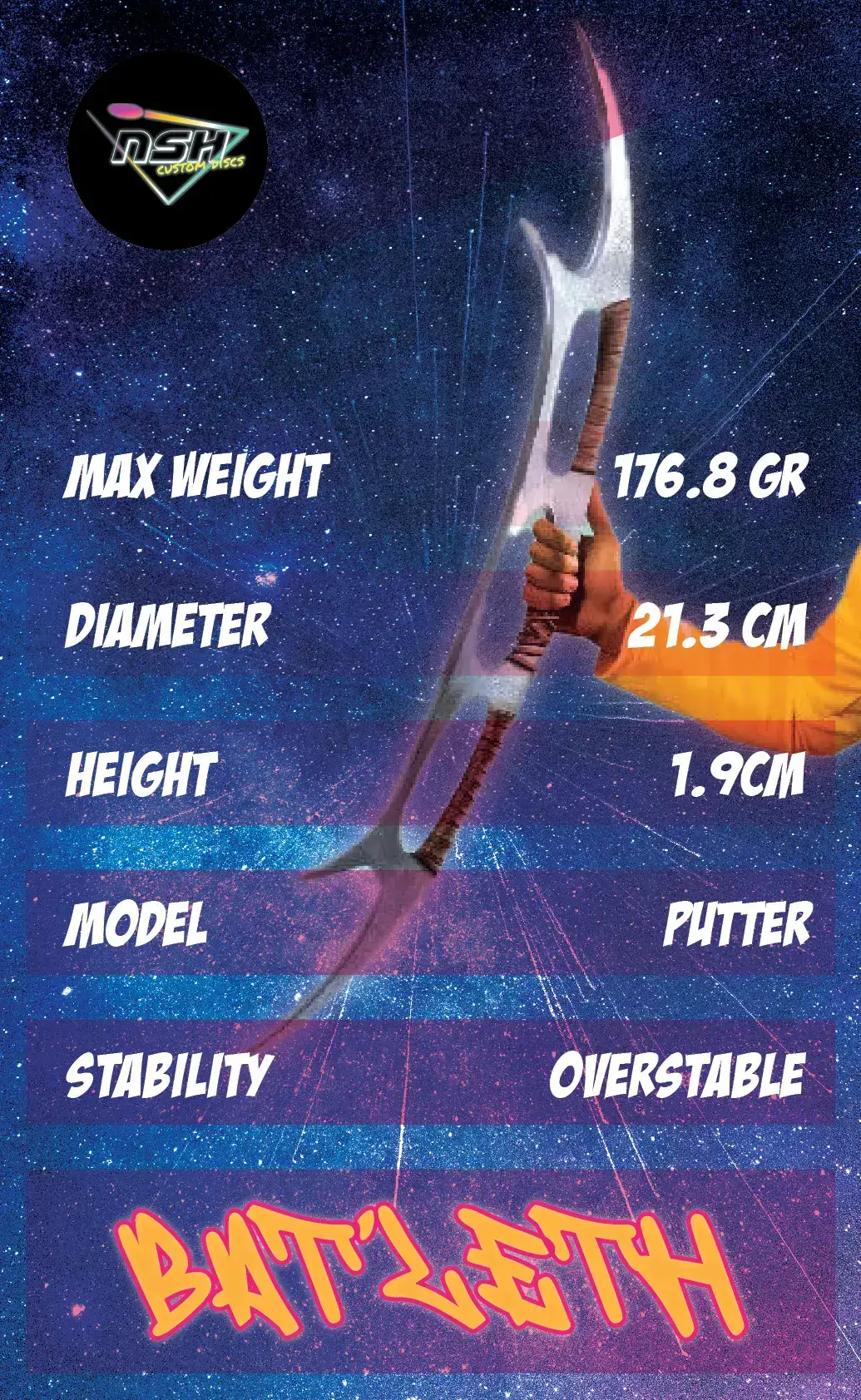 The Bat’Leth Custom Disc is an overstable, double-rimmed putter forged for precision and ready for your personal flair. Inspired by Klingon close-combat tradition, it delivers drag reduction, enhanced gyroscopic stability, and serious presence — on the green and in your hand.