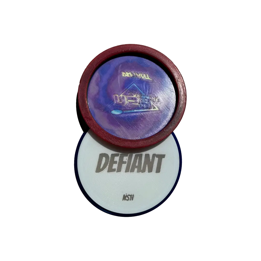 The Defiant Custom Disc is a glidey, understable putter designed to drift with control — and now, it’s yours to customize. Whether you’re dropping in with finesse or lacing a straight line through chaos, the Defiant offers consistent touch and a poetic flight path.