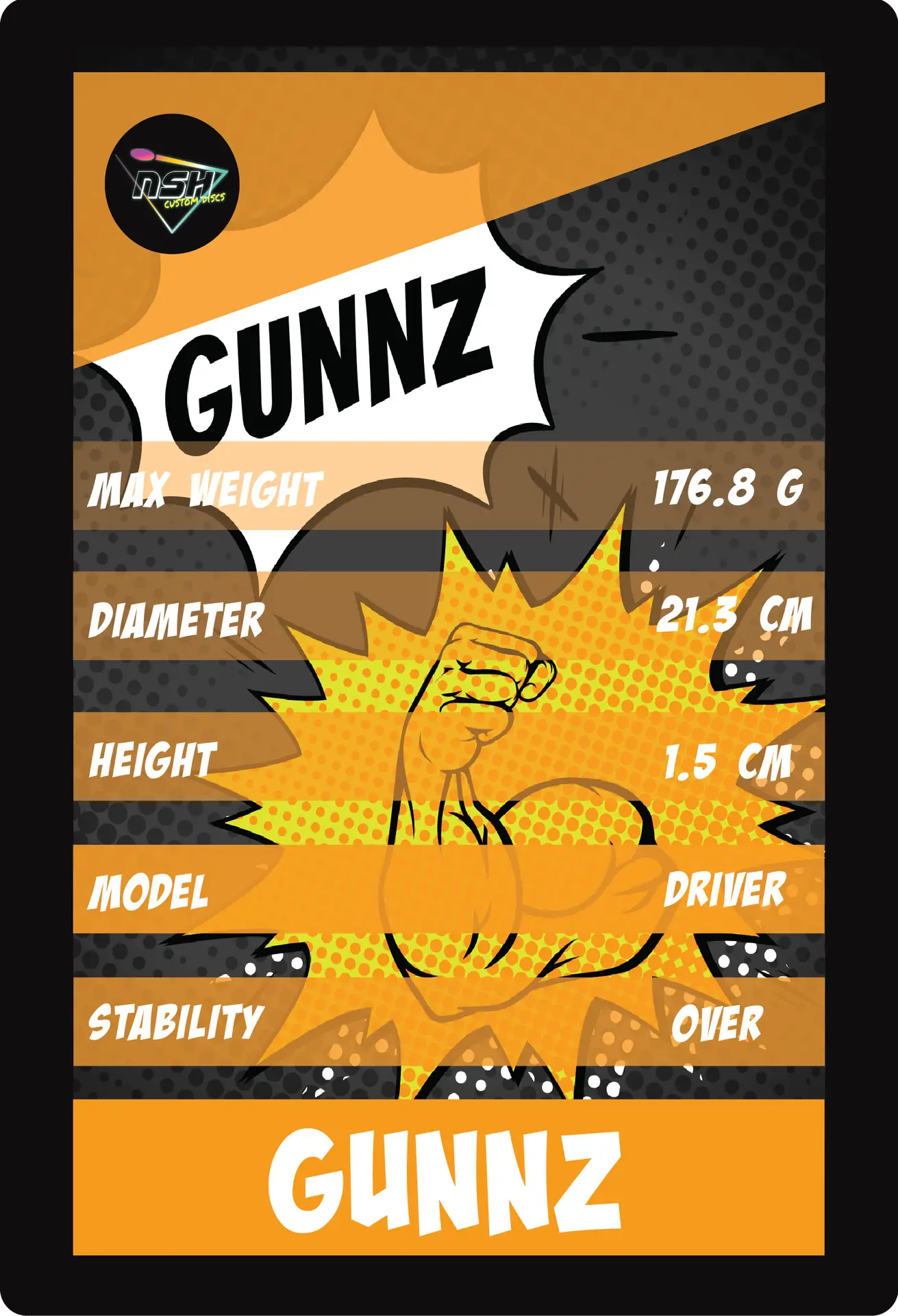 Meet GUNNZ. Built like a tank and ready to flex on the fairway, this overstable driver is all muscle and no nonsense. With a classic profile and seriously dependable flight, Gunnz is the closest thing NSH has to a “stock” shape—except he’s way too jacked for average. If you’re looking for power, consistency, and gym-rat swagger, Gunnz delivers.