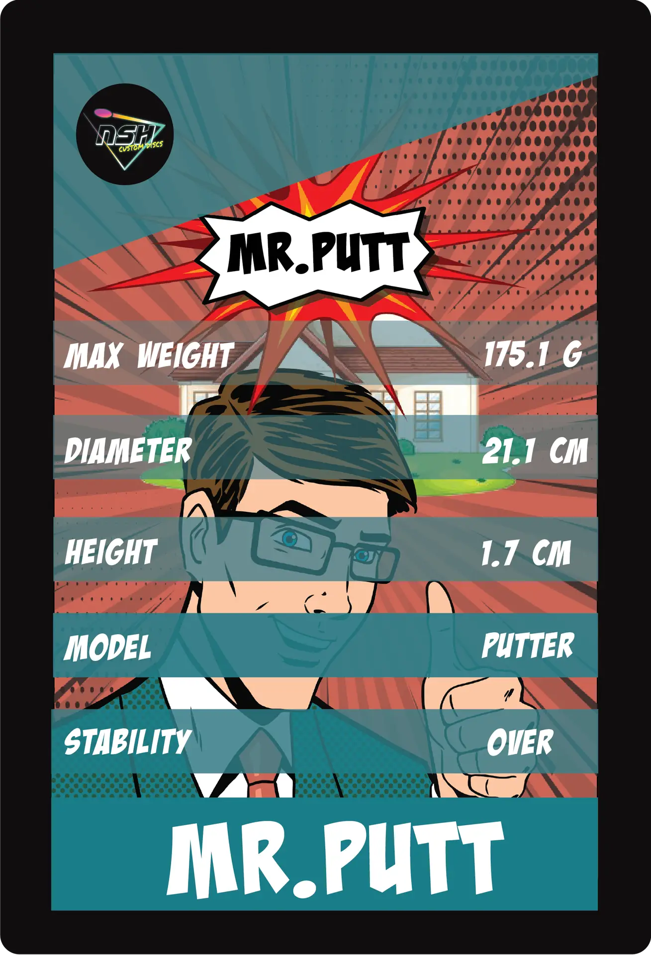 Origin: Sometimes you just need a disc that wants to go home. Doesn’t it know where its home is? What! What! Here is Mr. Putt! He knows where his home is, and it’s in the basket. He is so committed to getting home that he flies the same when thrown normal or inverted. Mr. Putt is a workhorse and is your secret weapon for picking up that last-minute clinch shot.
