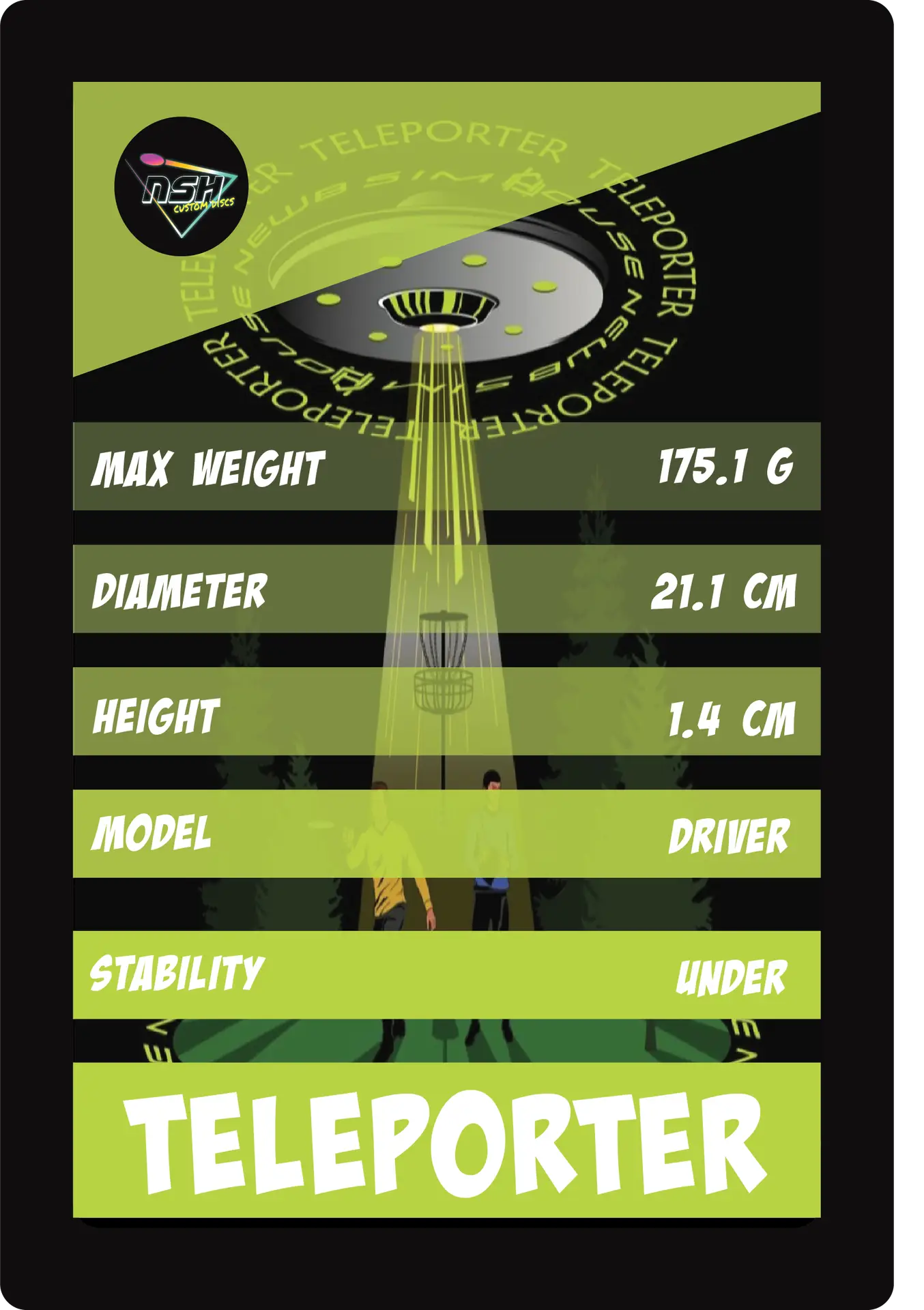 Origin: The Teleporter is a disc designed to fit the most common play-styles. This driver has a familiar look, but an uncommon feel. The grip and release of The Teleporter will make you wonder if there isn’t some spooky action at work, propelling the disc to its landing zone. The Teleporter looks even better at night with a custom glow stamp. With this disc in your bag you will feel confident in any mission, even a five year one. Boldly go!
